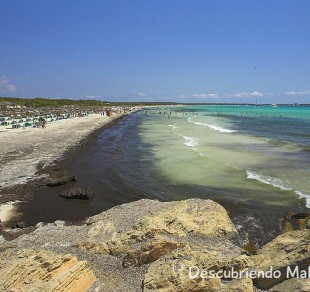 Su talud posee una fina arena blanca, una escasa pendiente, un sistema dunar que separa la playa del salobrar y los campos de cultivo (sa Savina des Turó Gros). Sus aguas abiertas al sur-suroeste-oeste y noroeste son transparentes. El fondo es de arena, alga y pequeñas zonas de piedras, a una profundidad de cuatro metros. Se recomienda a los navegantes que se alejen de la playa, ya que existe una losa de medio metro invisible los días de mal tiempo. A una milla marina y media se halla la instalación portuaria más próxima, el Club Nàutic sa Ràpita.